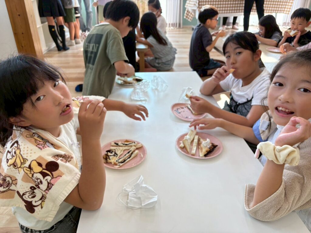 午後はみんなでチョコバナナサンド作りに挑戦!ふわふわのパンに甘いチョコとバナナをはさんで、とっても美…