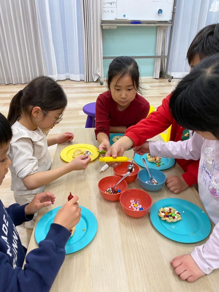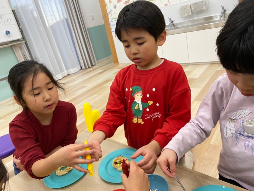 「Let’s cook!(料理をしよう!)」と声をかけ、みんなで楽しくお料理をしました。
