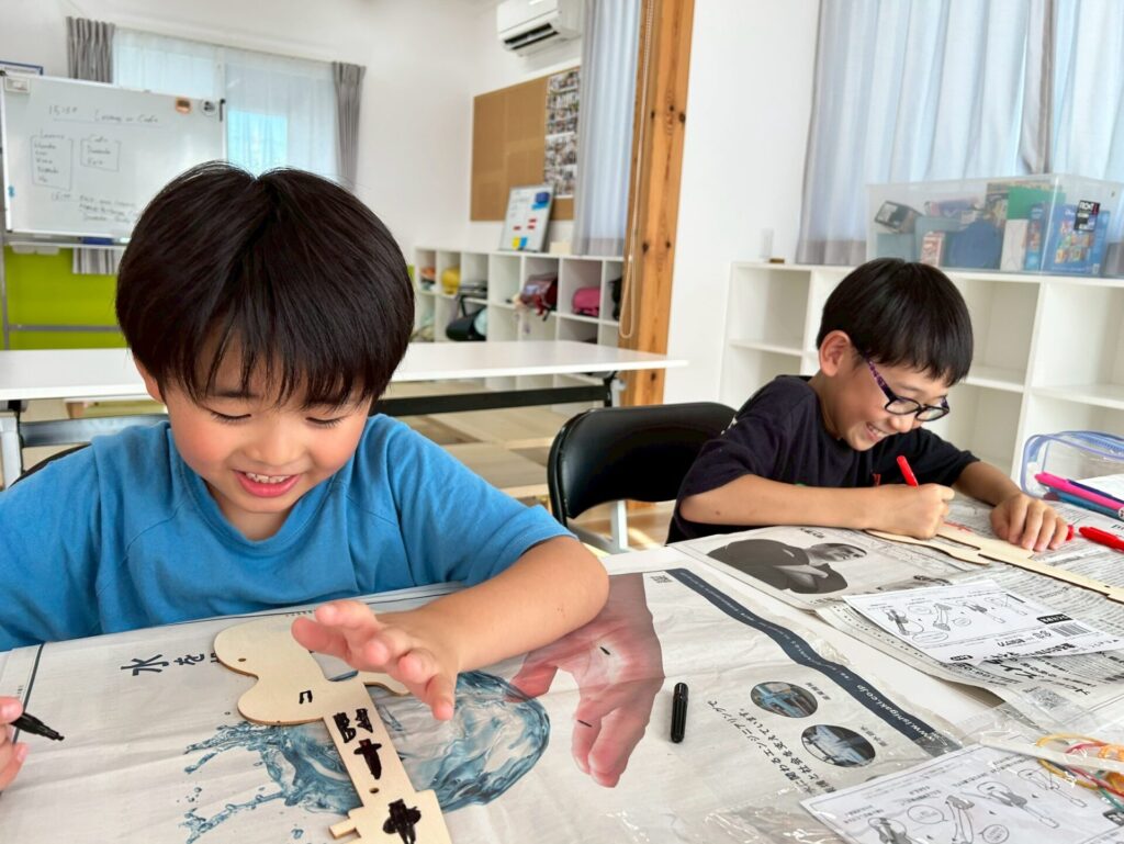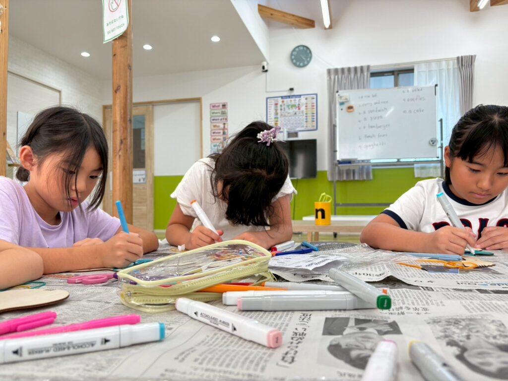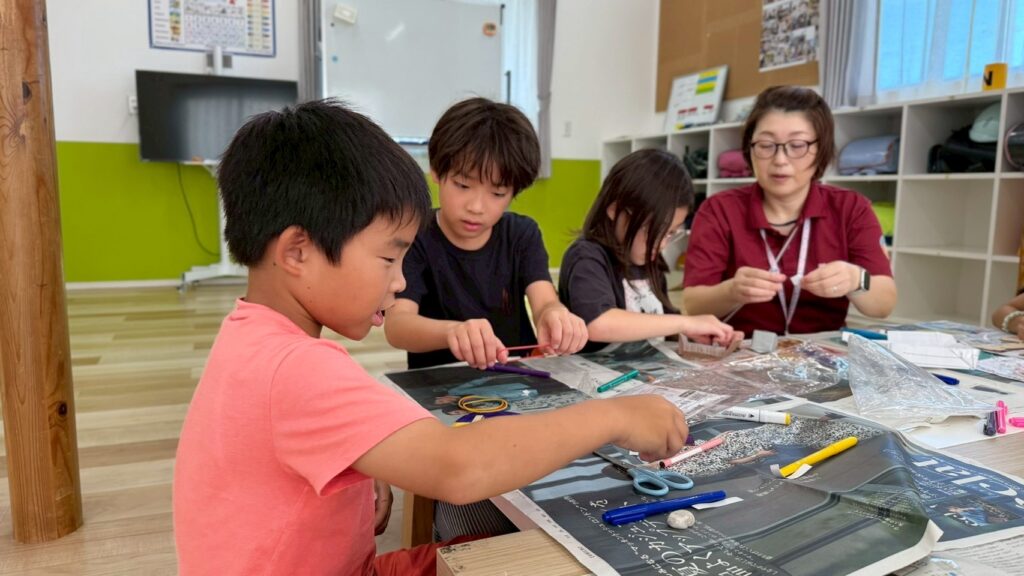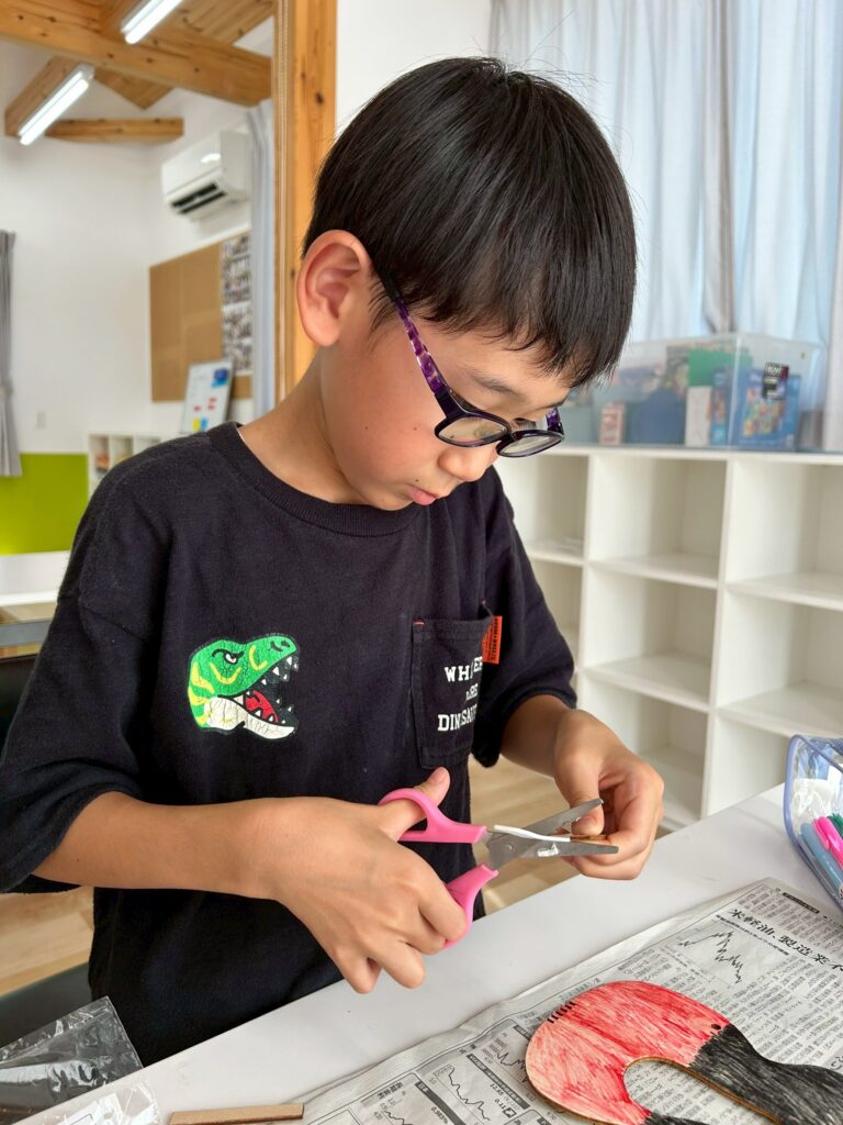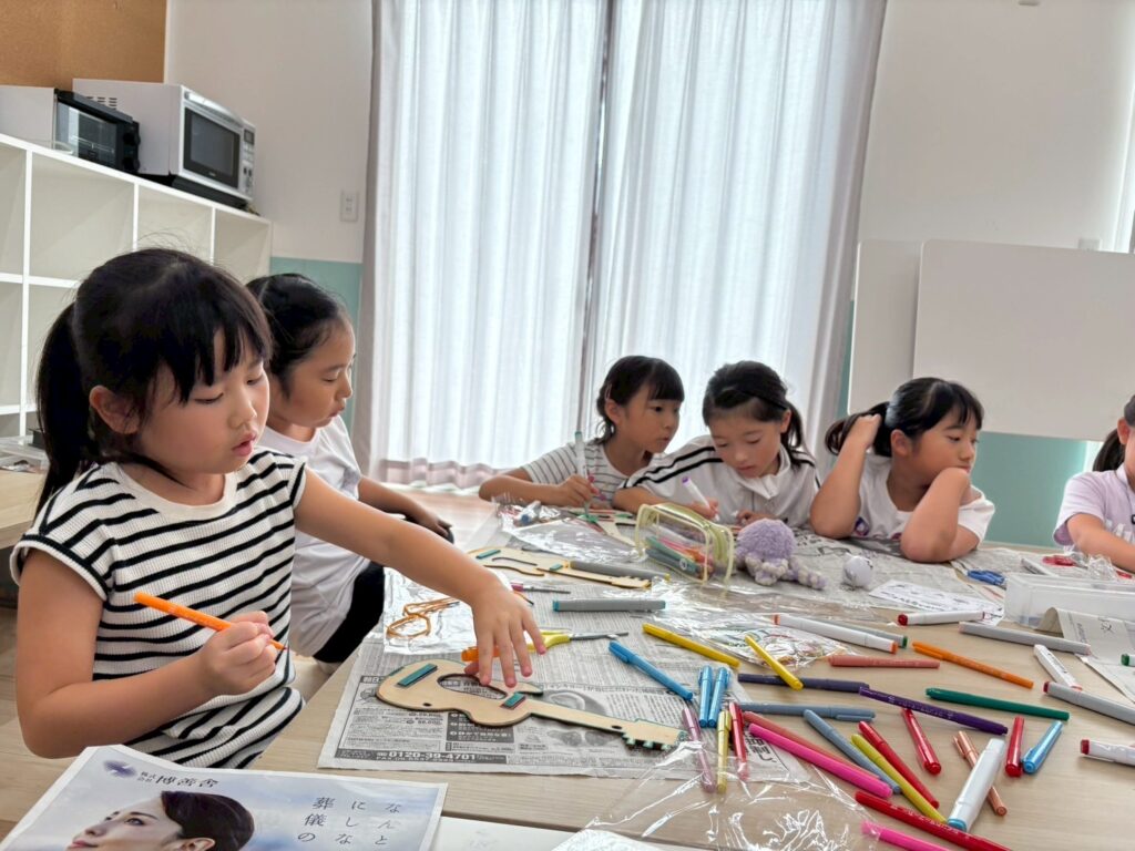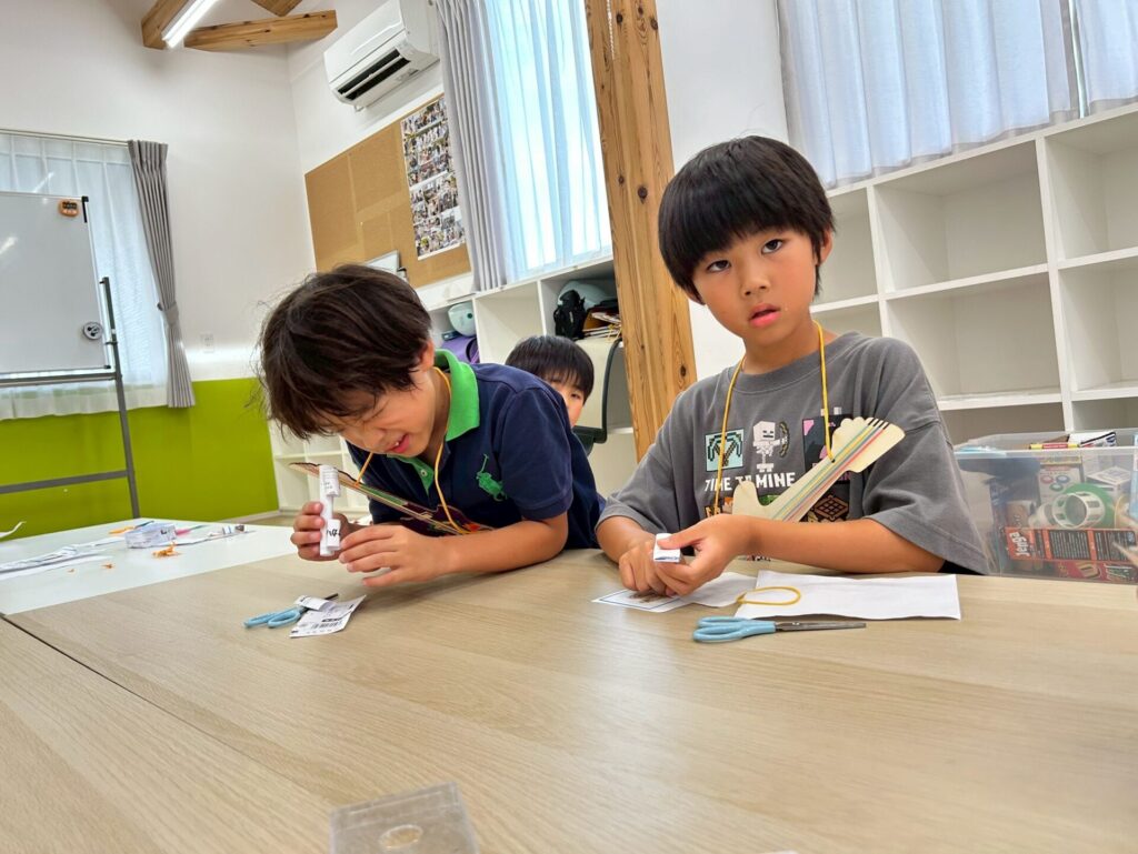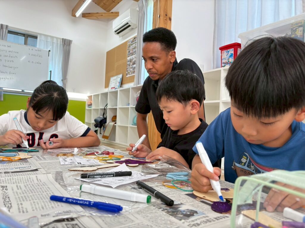 工作を通して、創造力だけでなく英語でのやりとりも体験でき、笑顔いっぱいの時間となりました。次回も「楽しく英語を使う工作」を企画していきたいと思います。