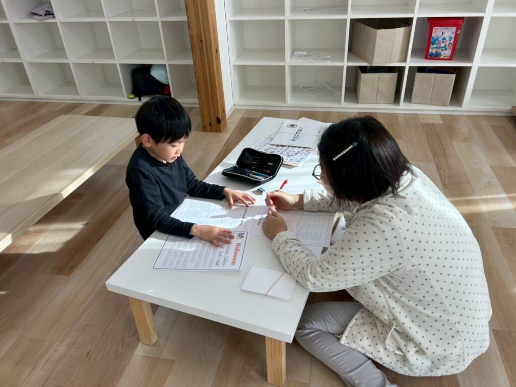 “Let’s write!” の声に合わせて集中してワークシートに取り組んだりと、みんな真剣な表情✨