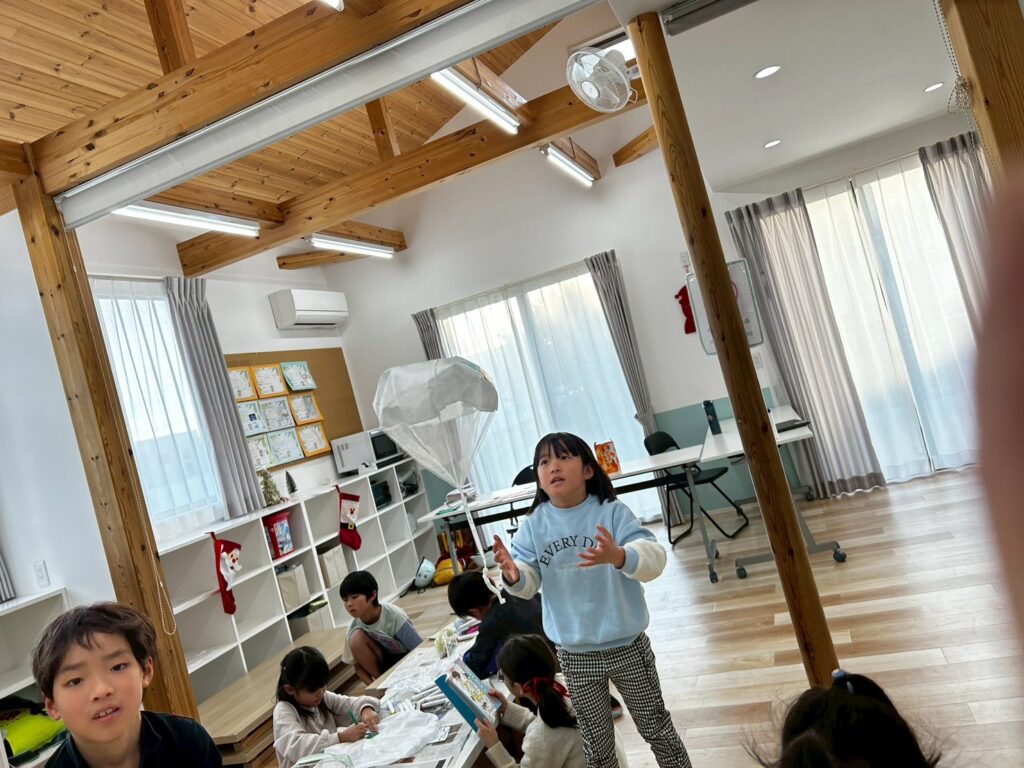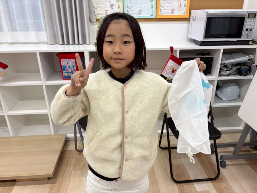 今週の学童では、英語を使いながらの工作活動として、パラシュート作りにチャレンジしました🪂