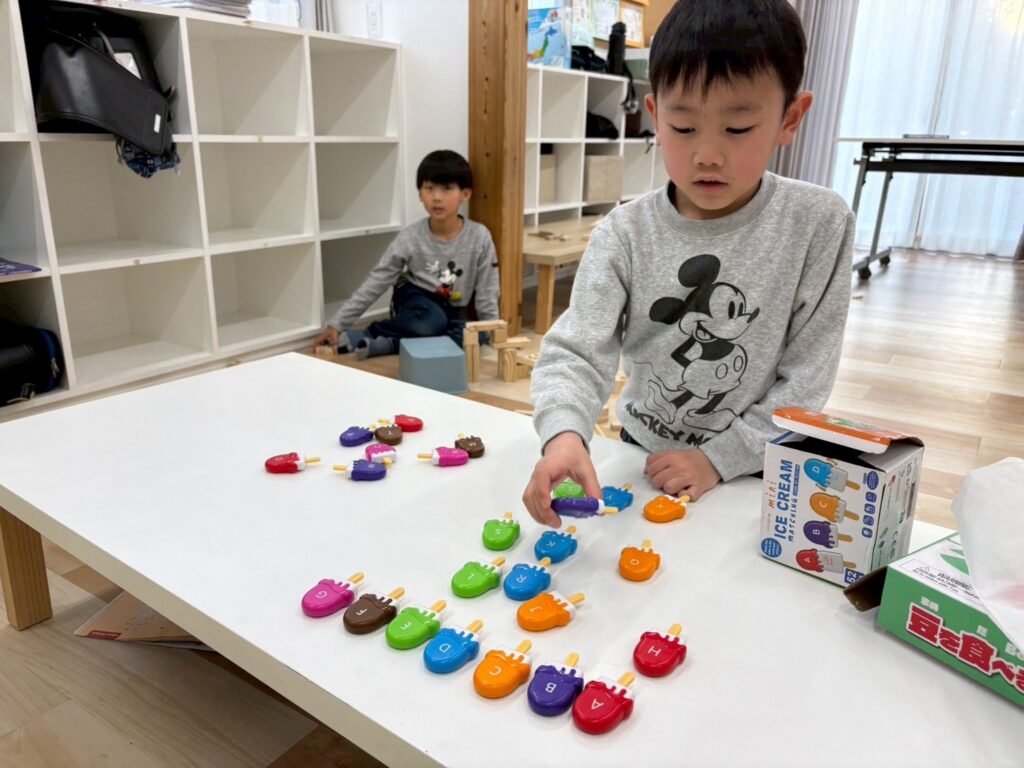 遊びの後は、レベル別の“English Session”をいつもより長めに実施。ワークシートを使って文法やライティングを強化し、少人数でじっくり取り組むことで、より実践的な英語表現に挑戦することができました。