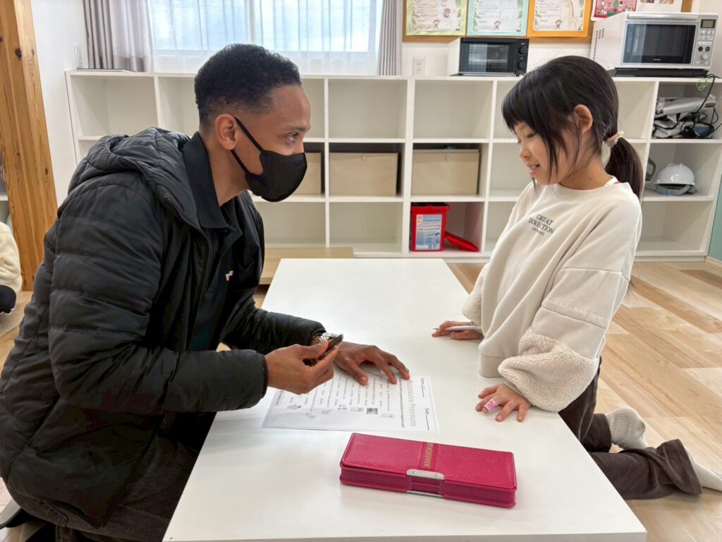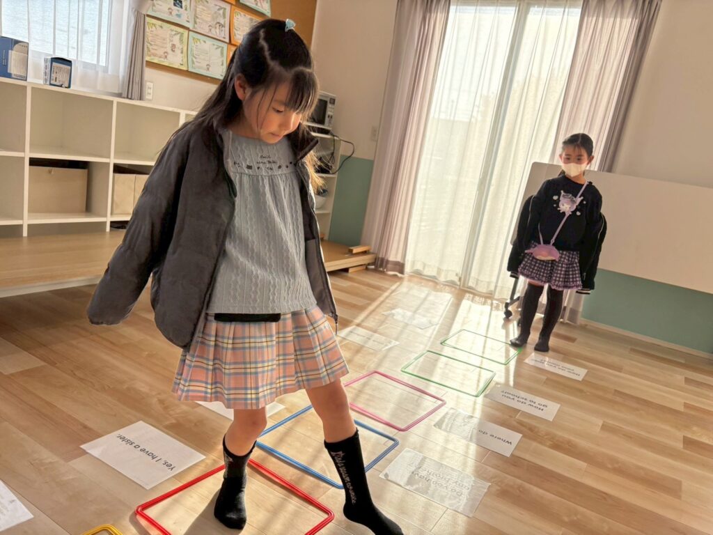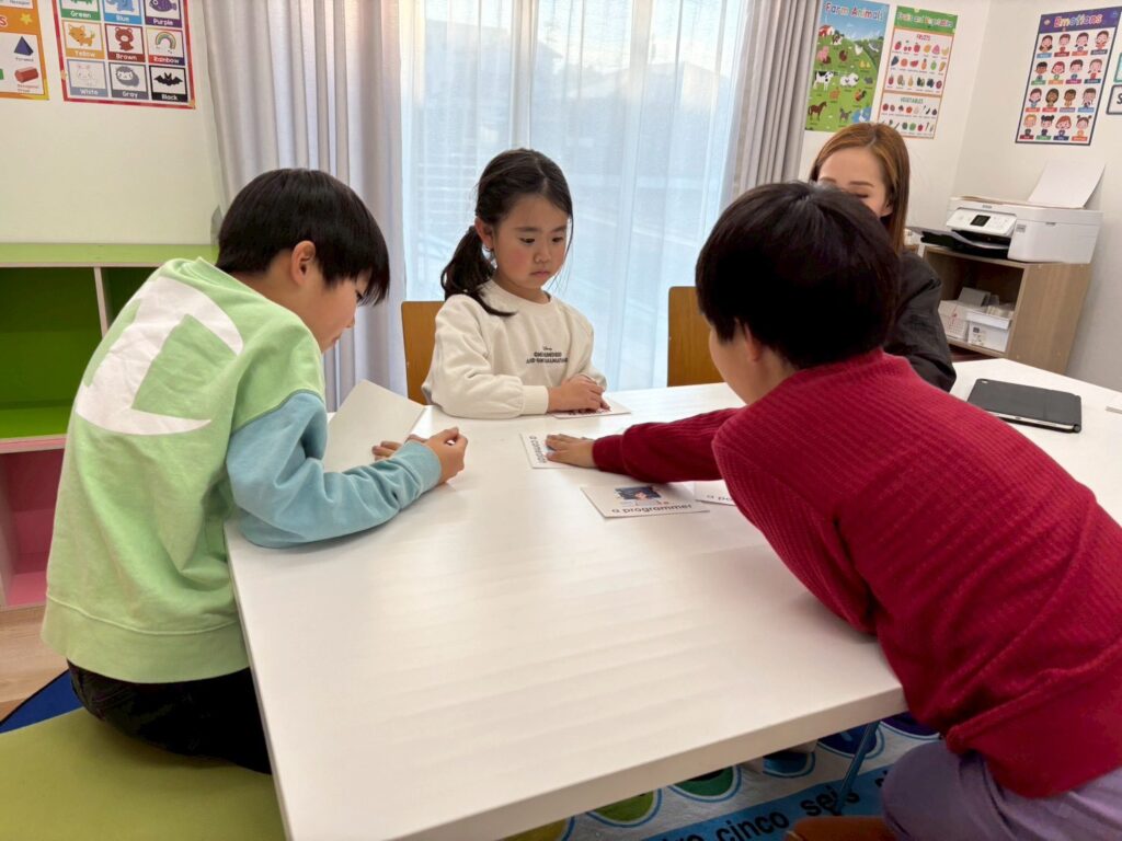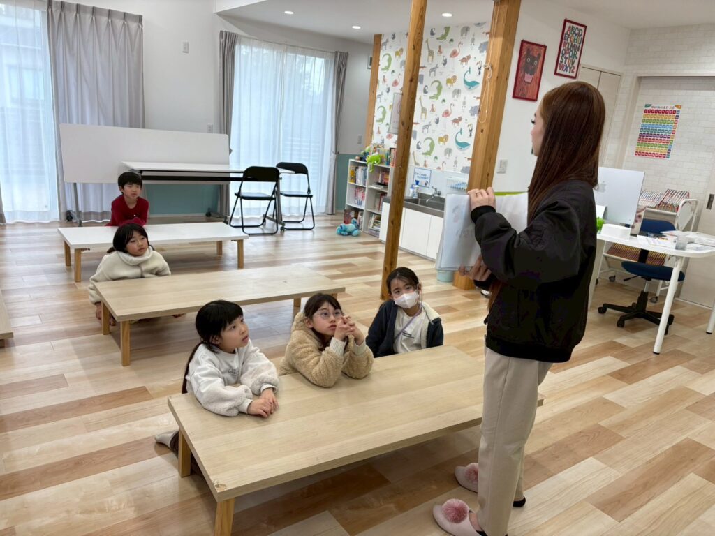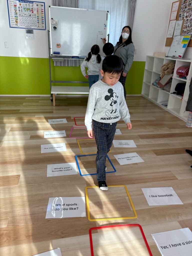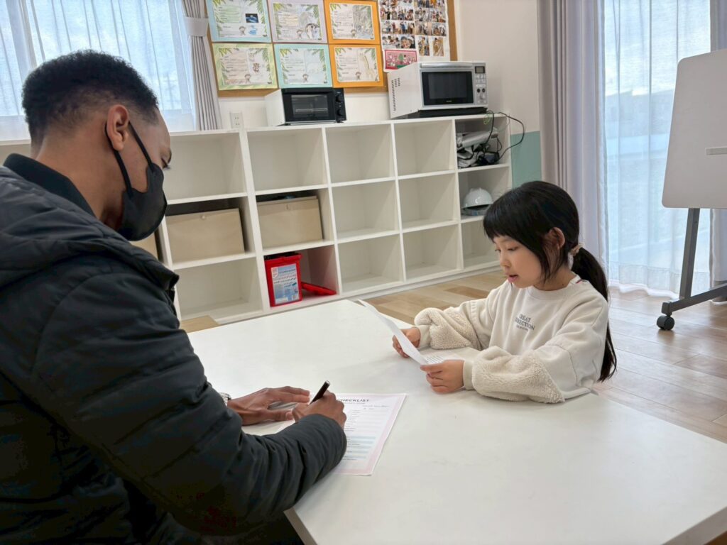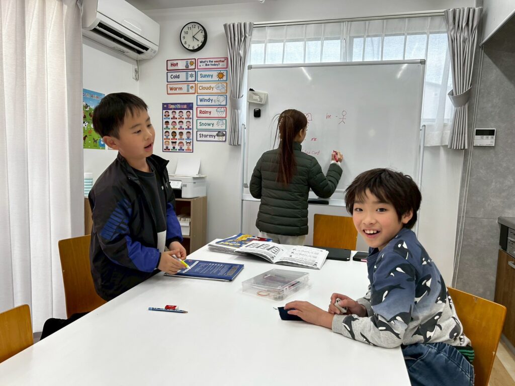 1月4週目の学童では、毎月恒例の“English Check List”(英語習熟度チェック)を外国人講師と一人ひとり行いました。みんな少しドキドキしながらも、“Let’s do our best!”と元気にスタート!チェック前には、リラックスしながら復習できる“Fun Review Games”をたっぷり行いました。体を動かしながら英語で答えるアクティビティでは、自然と笑顔と英語があふれていました。