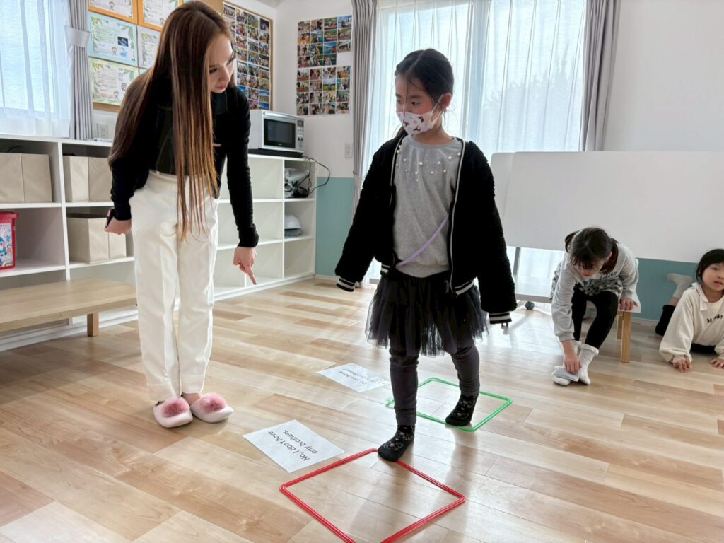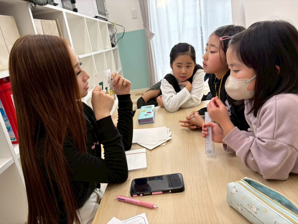 今週はlong session も実施し、動物の名前を通して 長い母音(long vowels) の音にも集中しました。例えば “sheep” や “seal” のように、同じスペルでも音が変わる単語に「どう発音するの?」と興味津々の姿が見られました。講師と一緒に “Hear the sound, say the word!” と楽しく繰り返すことで、正しいサウンドインプットができました。