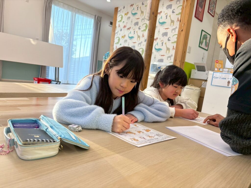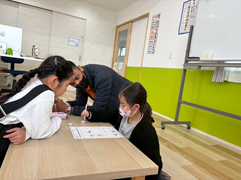 レッスンがない日にはフォニックスのプリントにも取り組み、分からないところは講師が横で一つひとつサポート。