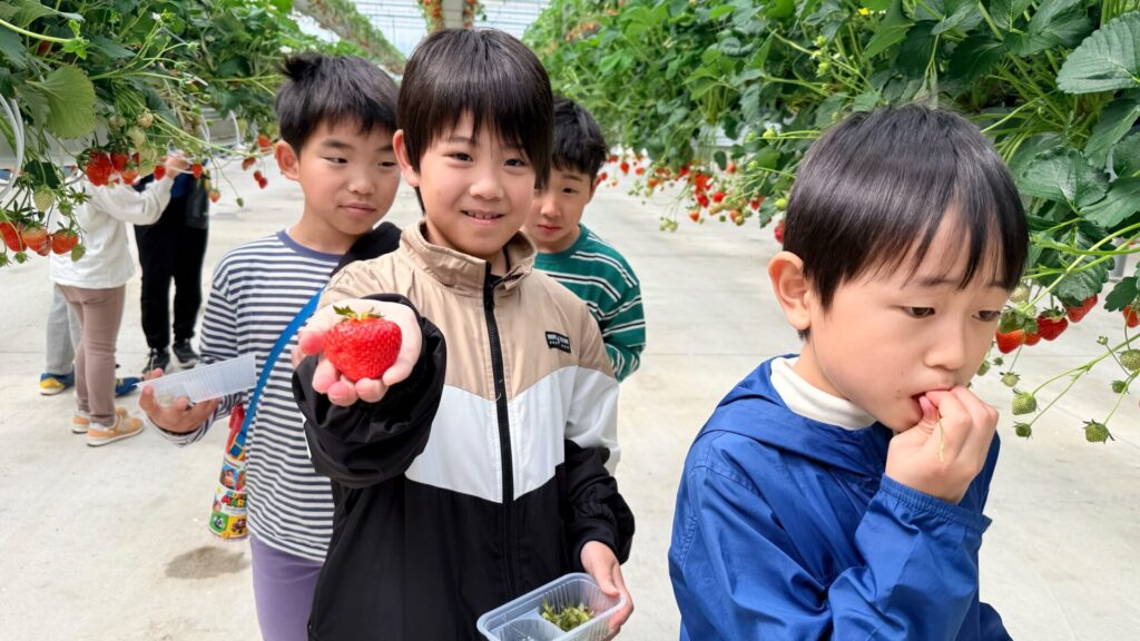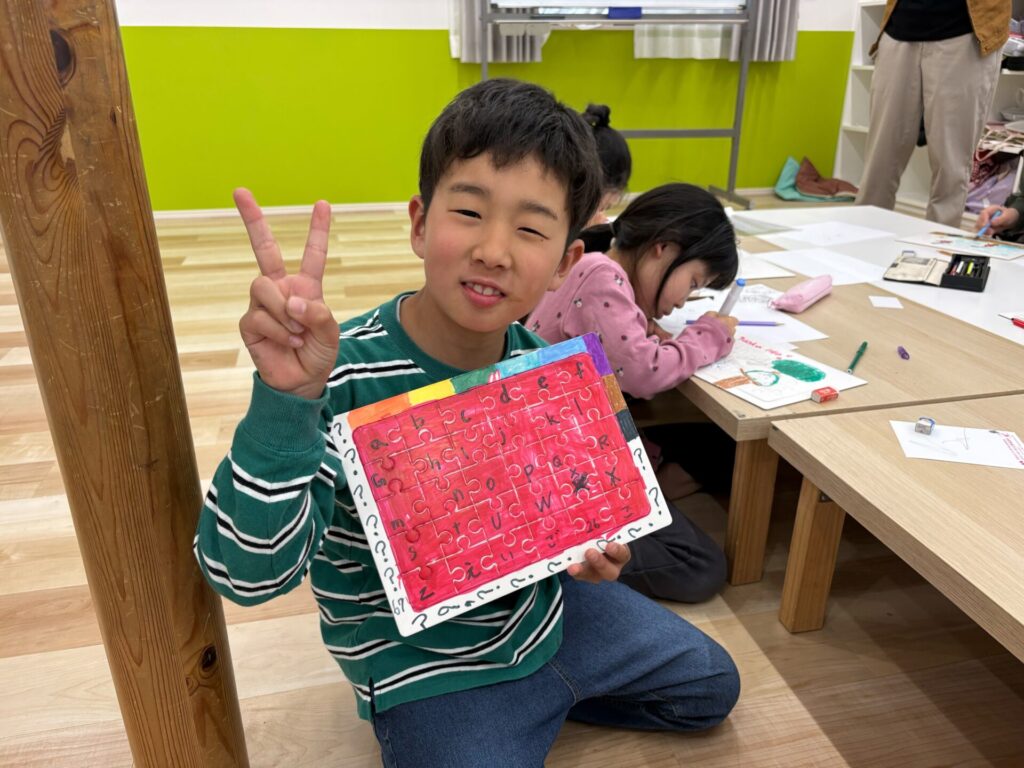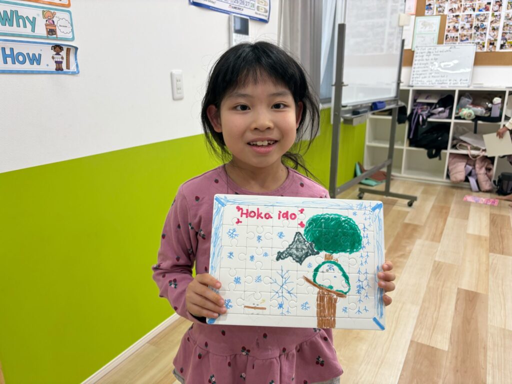 4日目の午前はStrawberry pickingへ。真っ赤ないちごを手に取りながら「It’s sweet!」と嬉しそうな声がたくさん聞こえました。午後は手作りパズルに挑戦し、それぞれの個性あふれる作品が完成しました。
