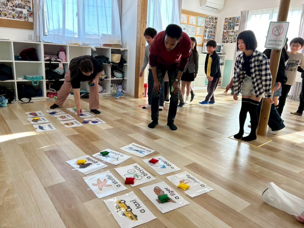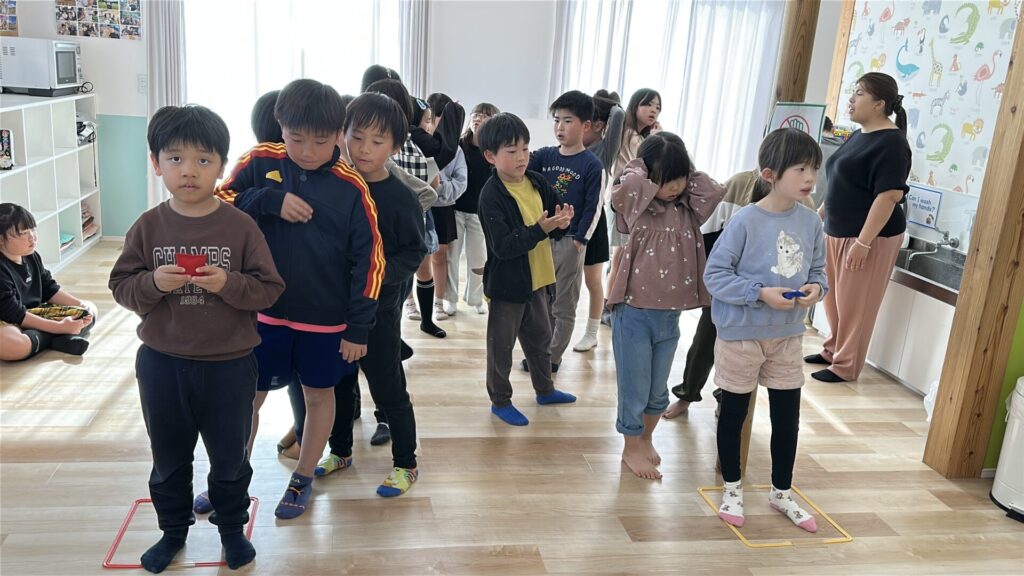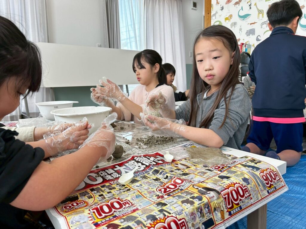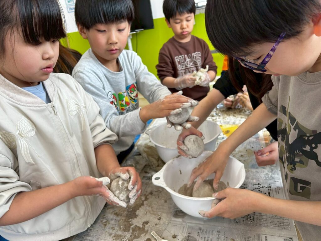 5日目の午前はShiny Mud Balls作り。泥だんごを丁寧に磨き、「So shiny!」と達成感いっぱいの表情が見られました。午後はEnglish Activityとして、ゲームを通して英語を実践。「Your turn!」「Pass it!」など自然に言葉が飛び交い、楽しみながら学ぶ時間となりました。