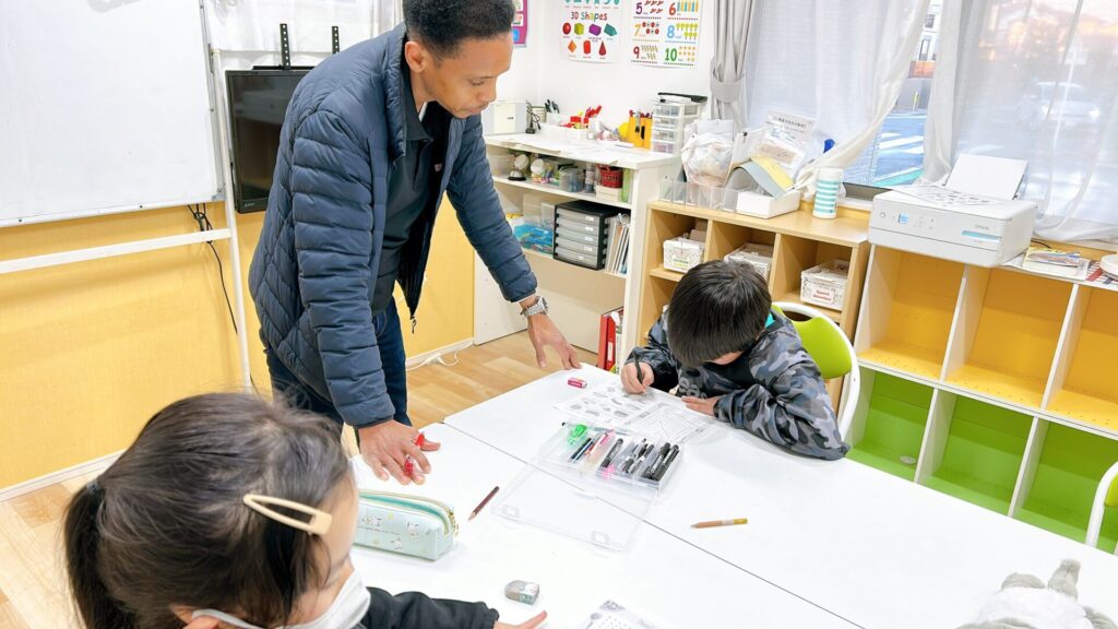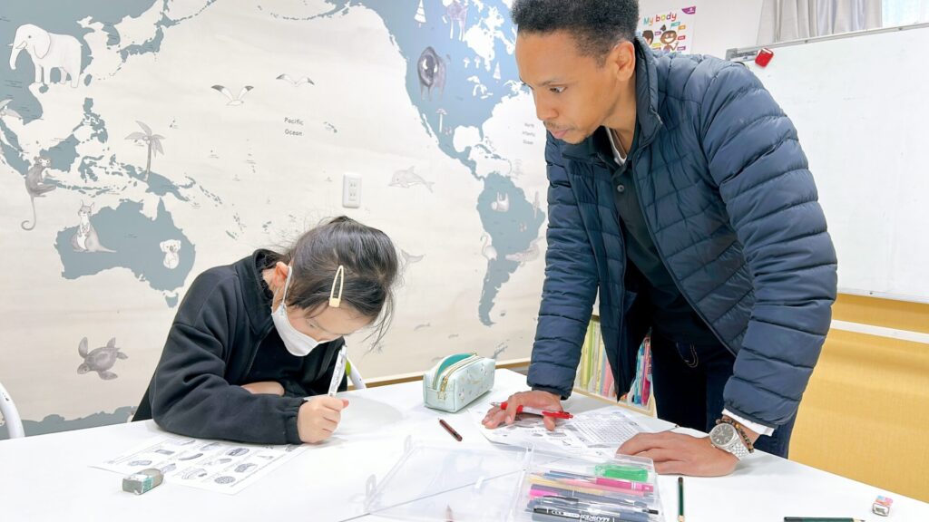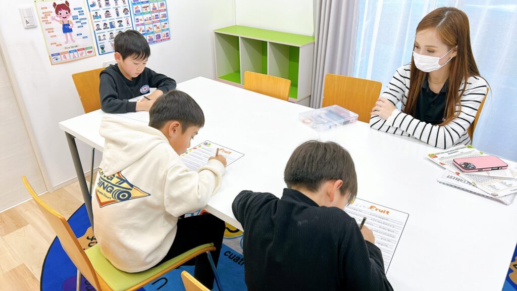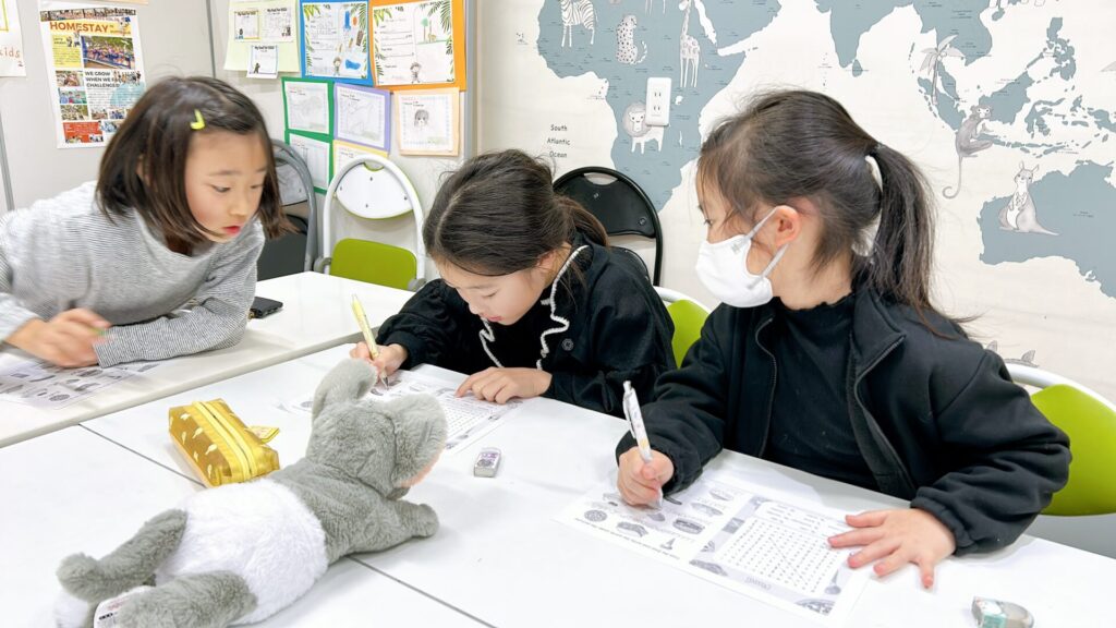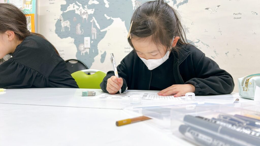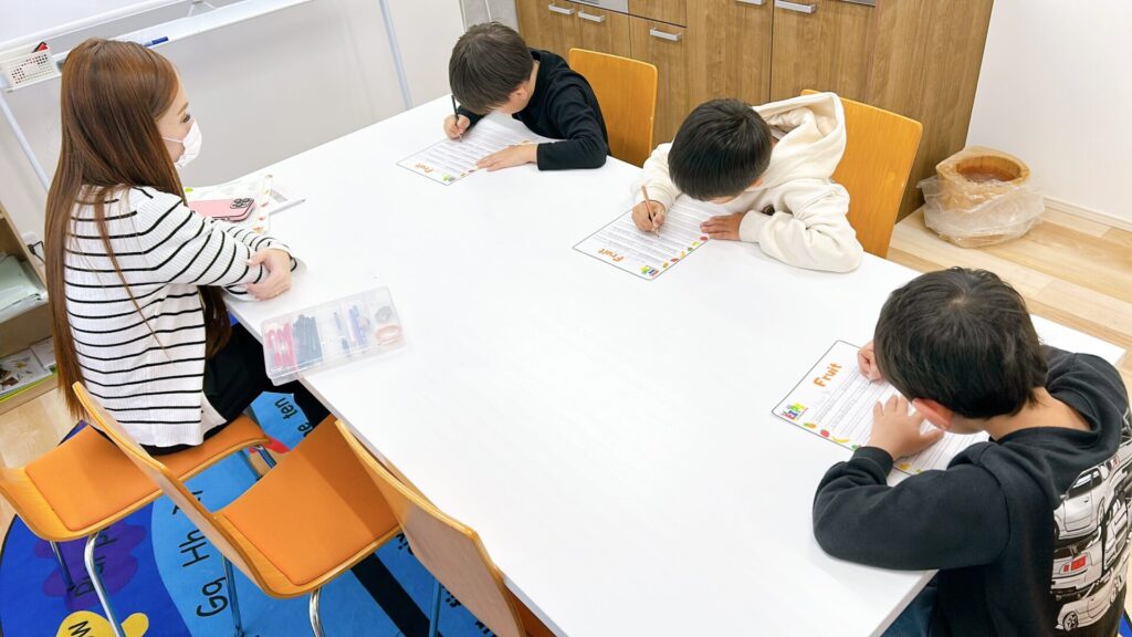 テーブルでのレッスンではワークシートに集中する時間。