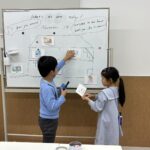 ホワイトボードの前に立ち、
