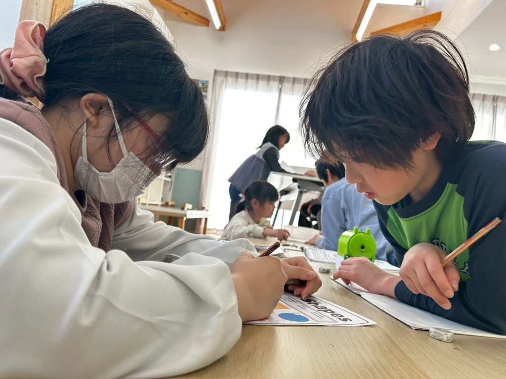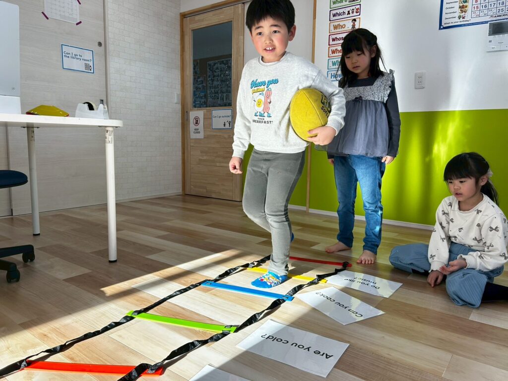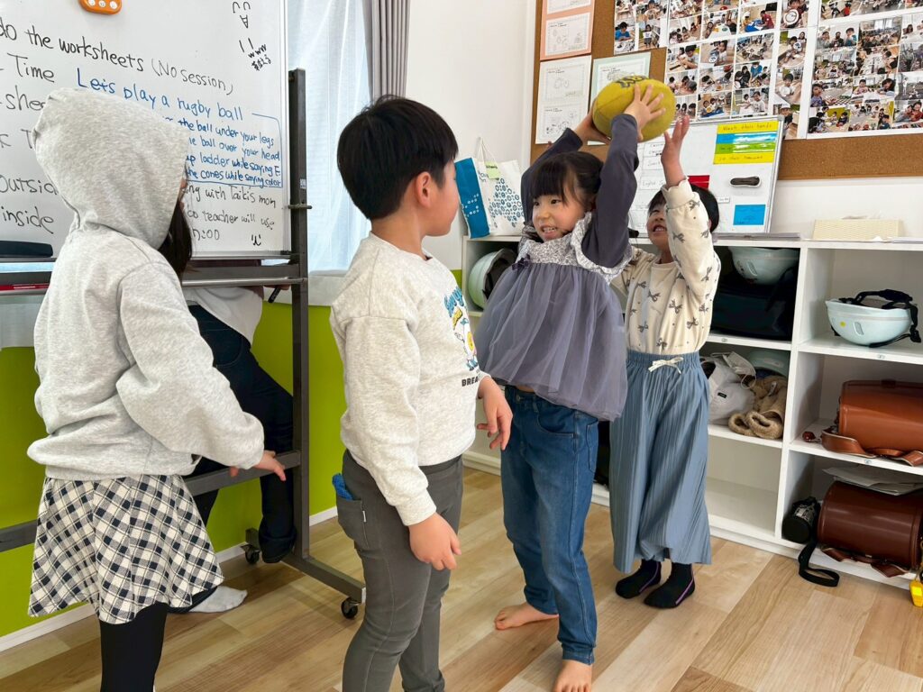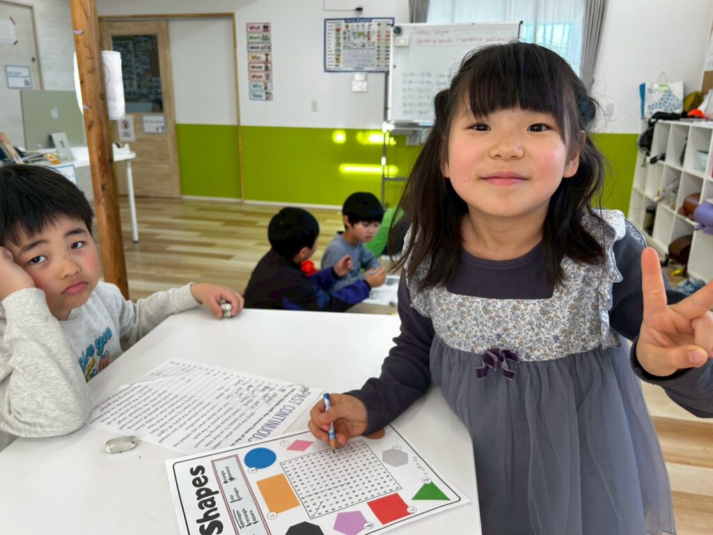 ゲームやアクティビティを通して英語に触れることで、子どもたちは楽しみながら表現を覚えていきます。形と色をテーマに、これからも英語で伝える力を少しずつ伸ばしていきたいと思います。