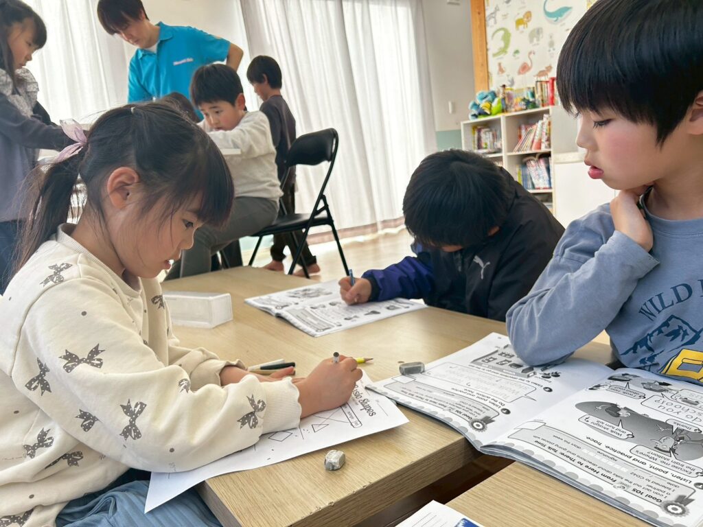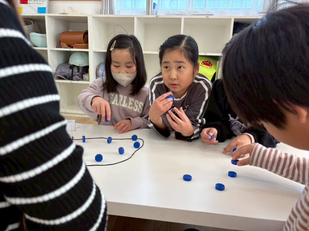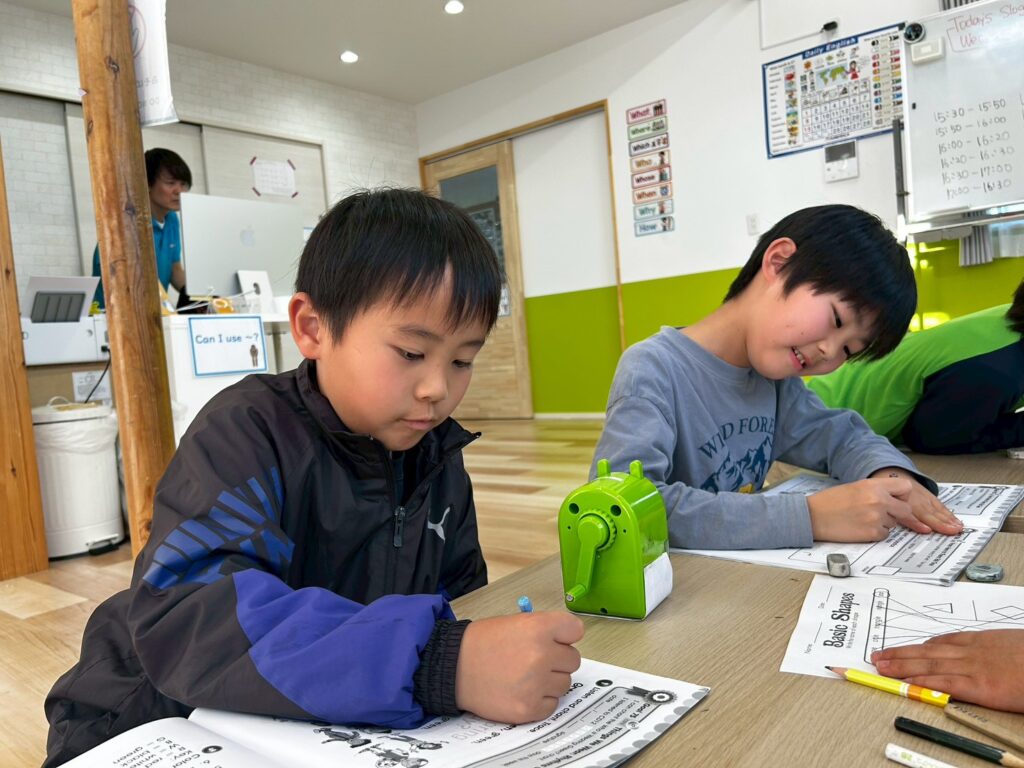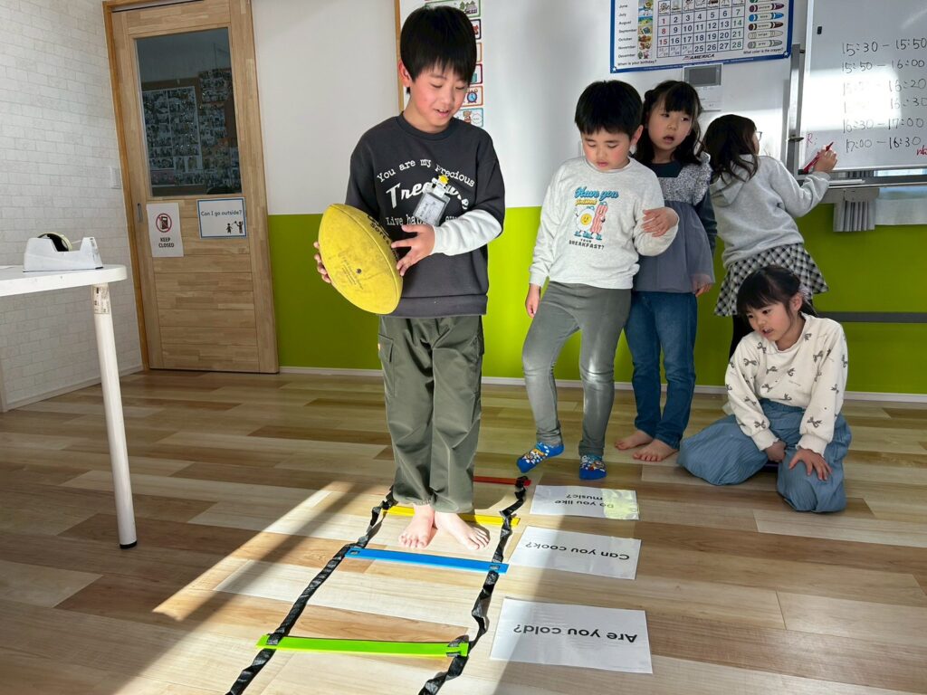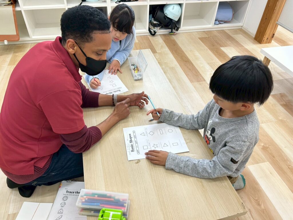 ゲームやアクティビティを通して英語に触れることで、子どもたちは楽しみながら表現を覚えていきます。形と色をテーマに、これからも英語で伝える力を少しずつ伸ばしていきたいと思います。